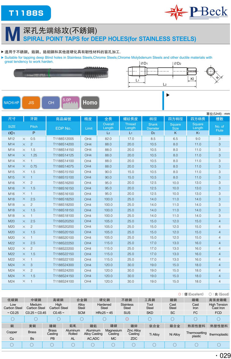29. 加長公制先端鋼件絲攻050