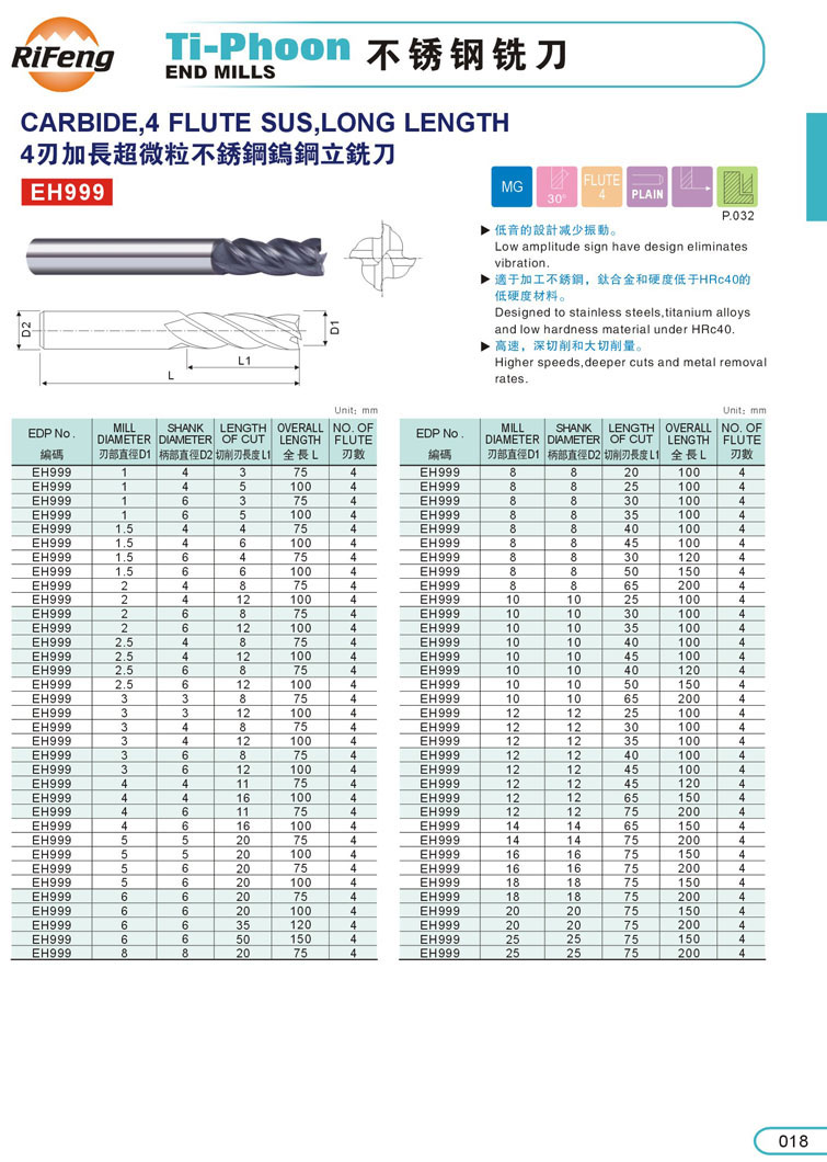 4刃加長(zhǎng)不銹鋼立銑刀018